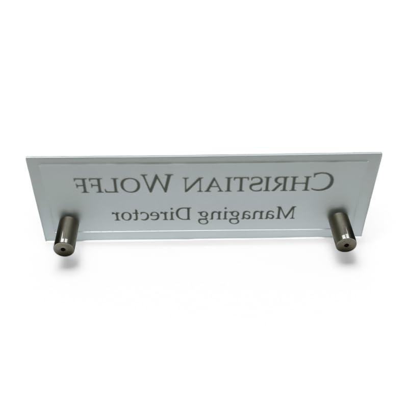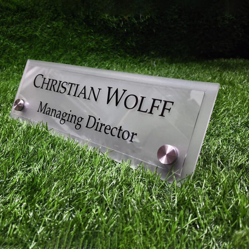 Gugan's Acrylic Desk Name Plate - Personalised Desk Name Plate, Custom Desk Sign, Office Plaque, Executive Office Sign (12 x 4 Inches) with 2 nos Studd (Frost)