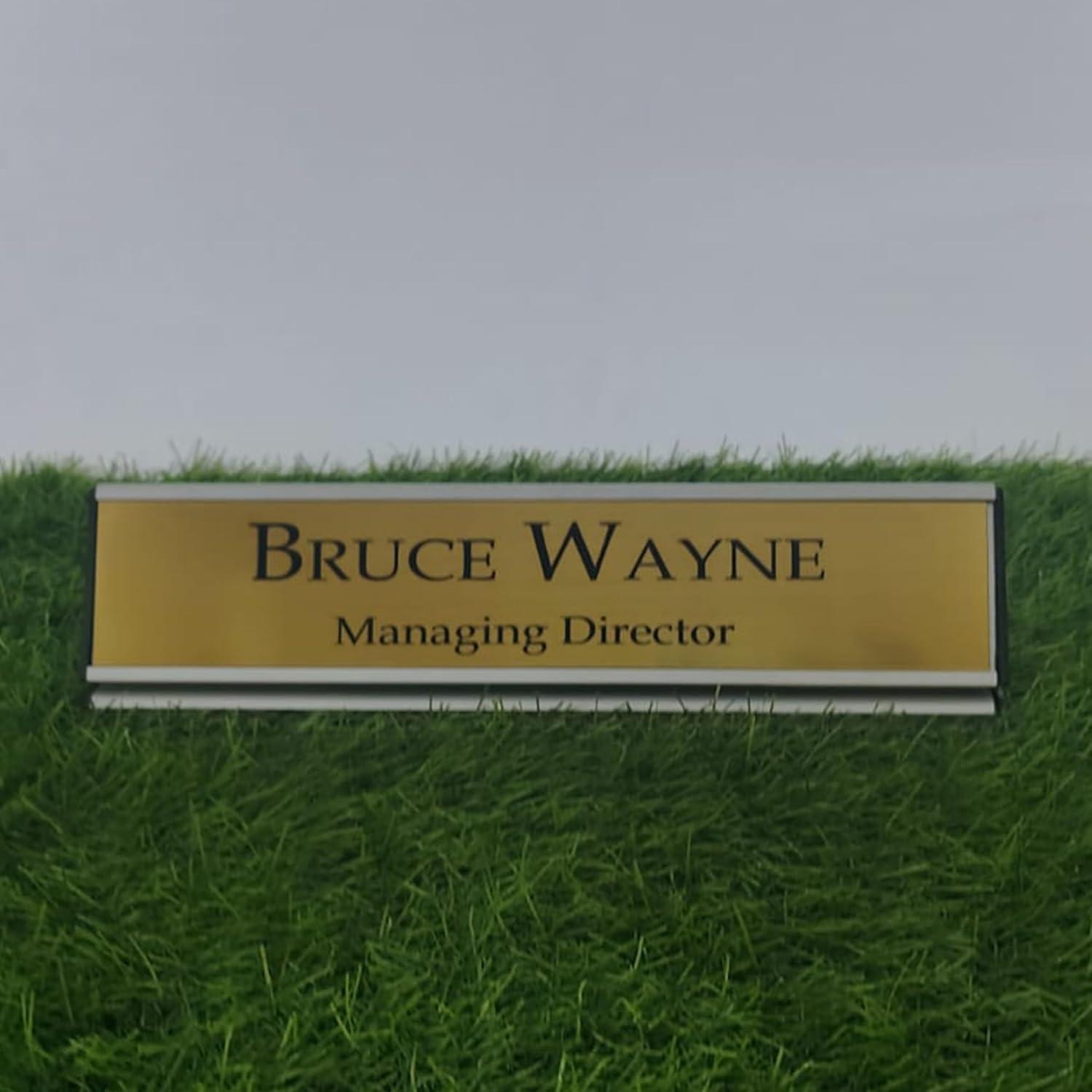 Gugan's Aluminum Desk Name Plate – Personalized Office Name Sign with Holder, Modern Desk Décor for Professionals, Boss, and Executives- Double Side (12 x 3 Inches) (Gold, Silver)