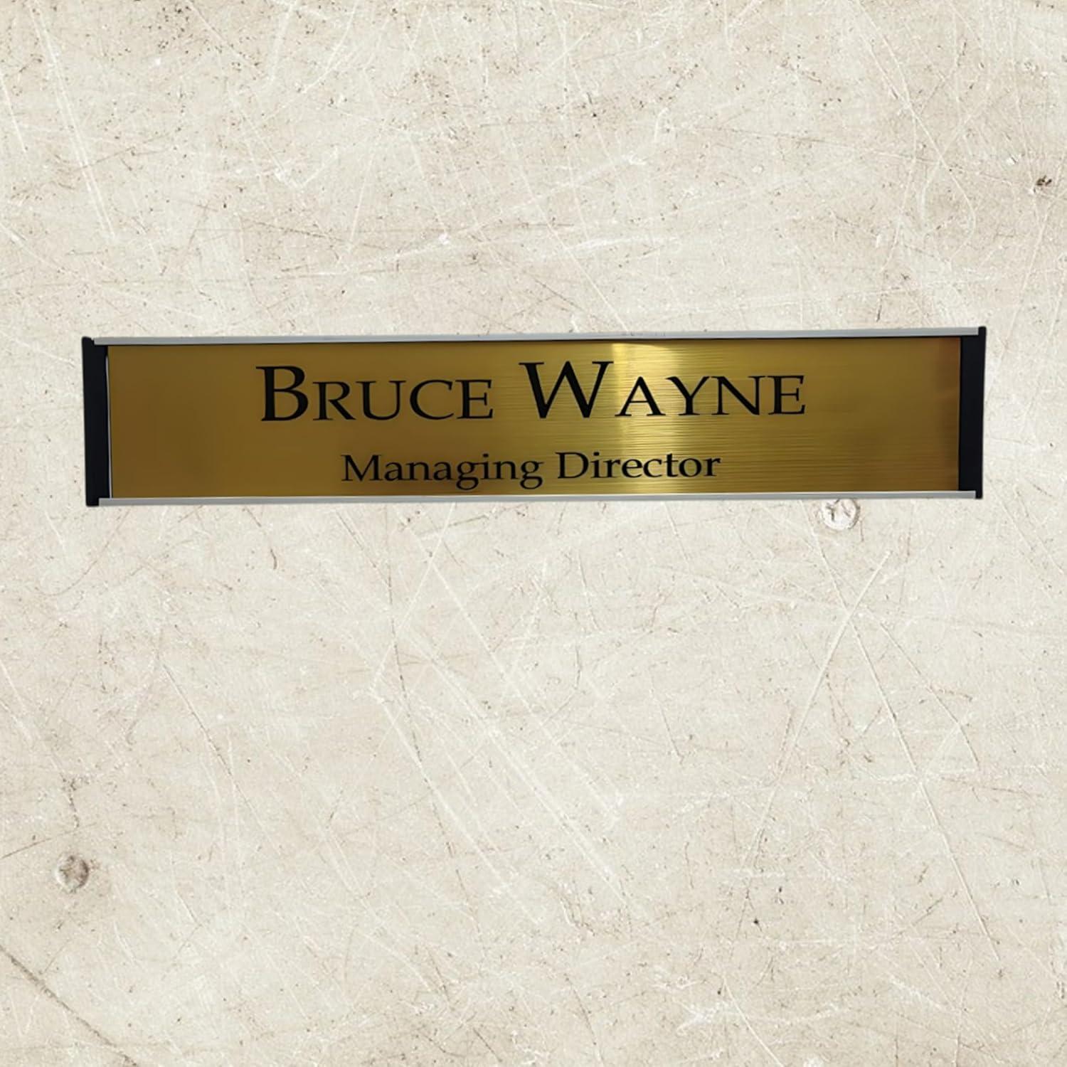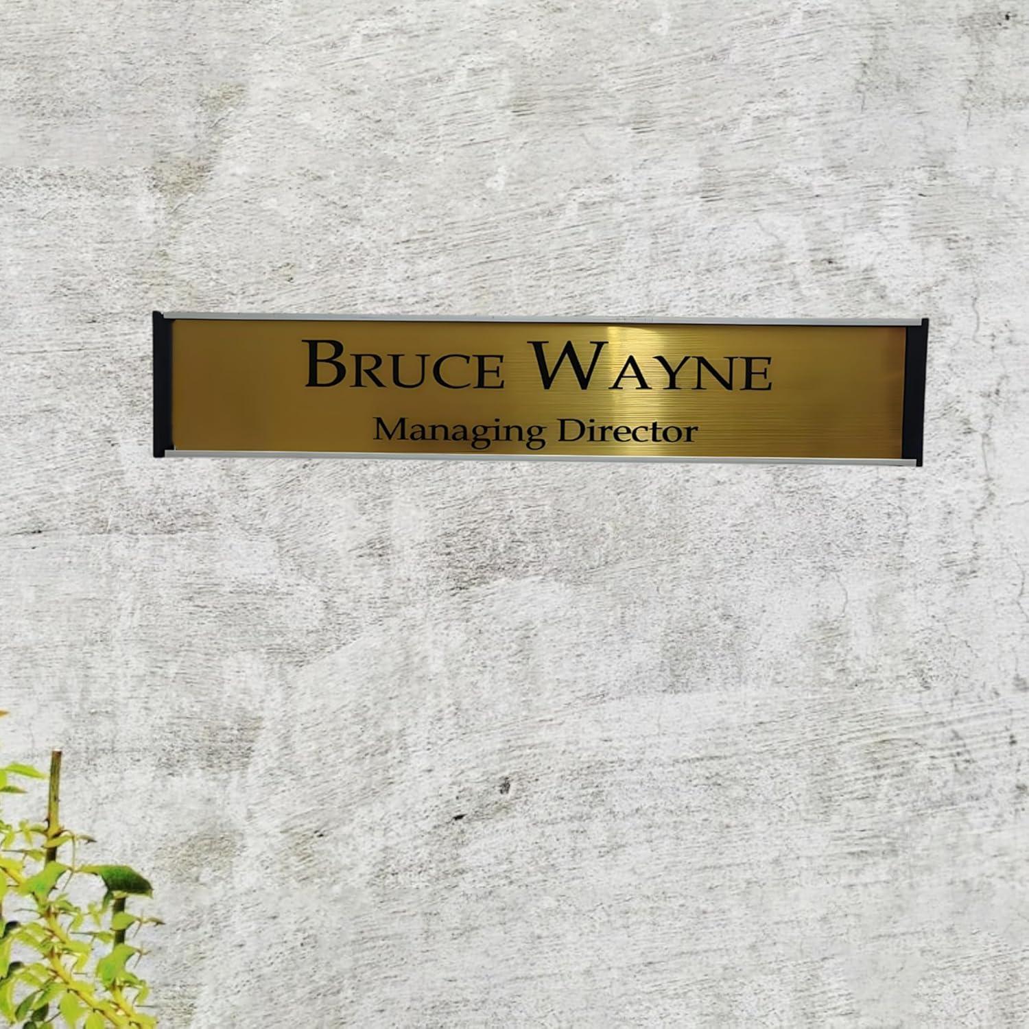 Gugan's Nameplate with Modern Aluminum Nameplate Holder for Wall or Door, Adhesive Backing Included (Gold, 30 x 06 cm)