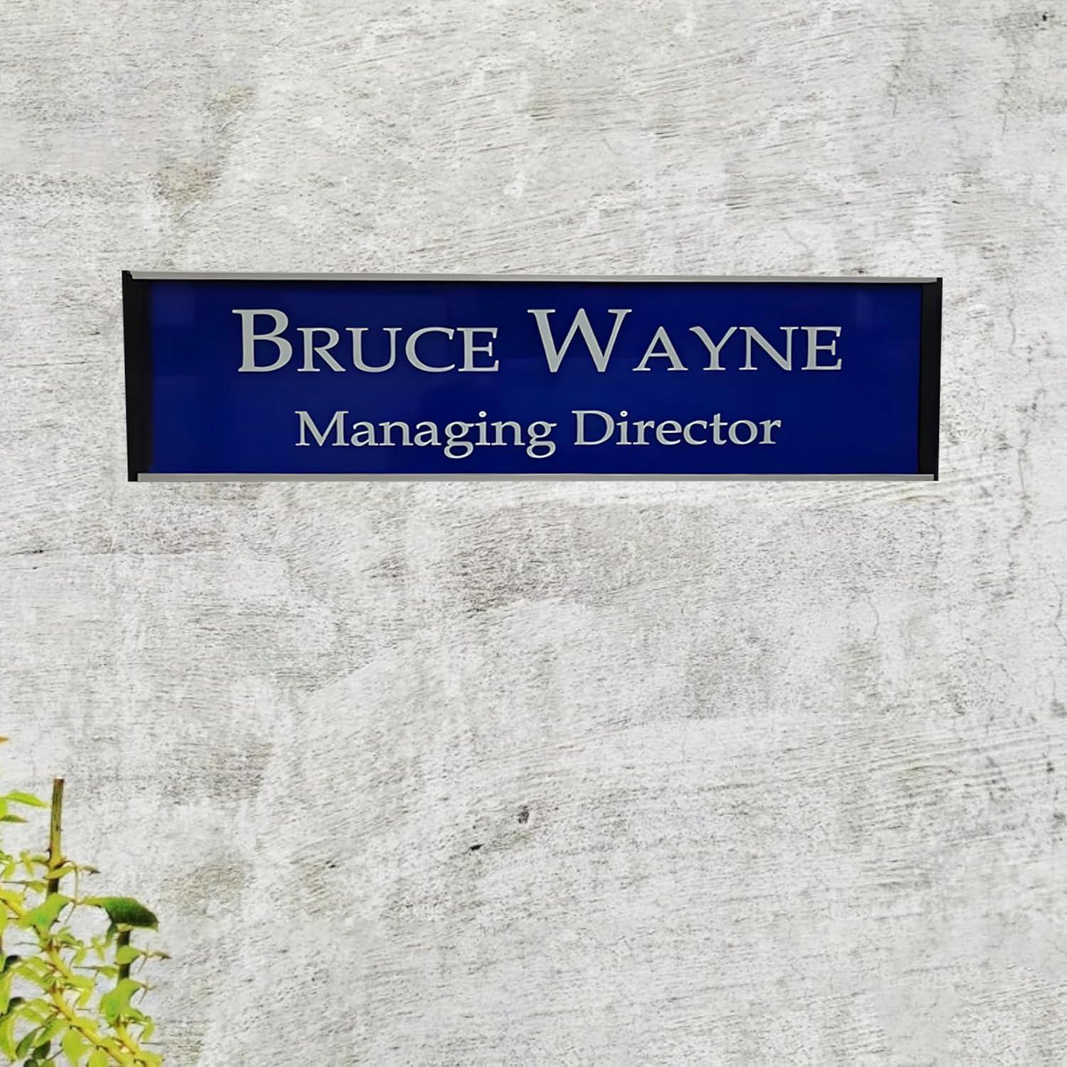 Gugan's Nameplate with Modern Aluminum Nameplate Holder for Wall or Door, Adhesive Backing Included (Blue, 30 x 08 cm)